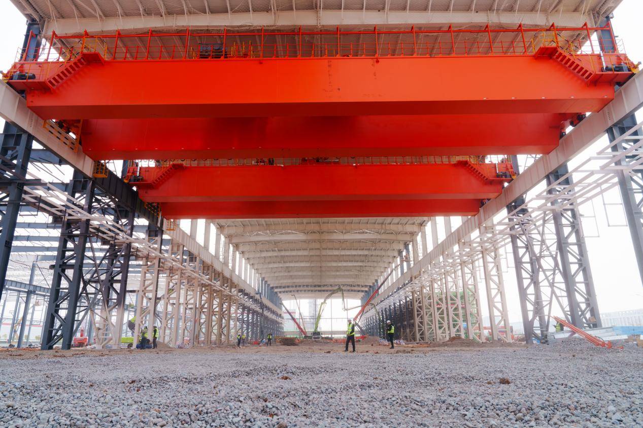 项目建设钢结构吊装进度突破90%,地面碎石层施工完成80%