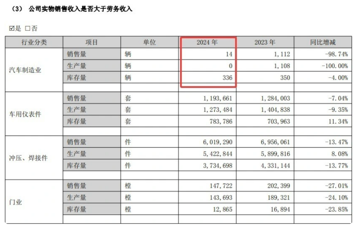 然而整个2023年,众泰汽车仅销售整车1112台,其中新能源车42台。2024年众泰汽车又传出消息,与阿尔及利亚经销商达成合作,签约3万辆的订单。但2024年众泰汽车更是全年仅销售了14台车,且生产量为0。所有销售车辆均为库存车出口至阿尔及利亚。