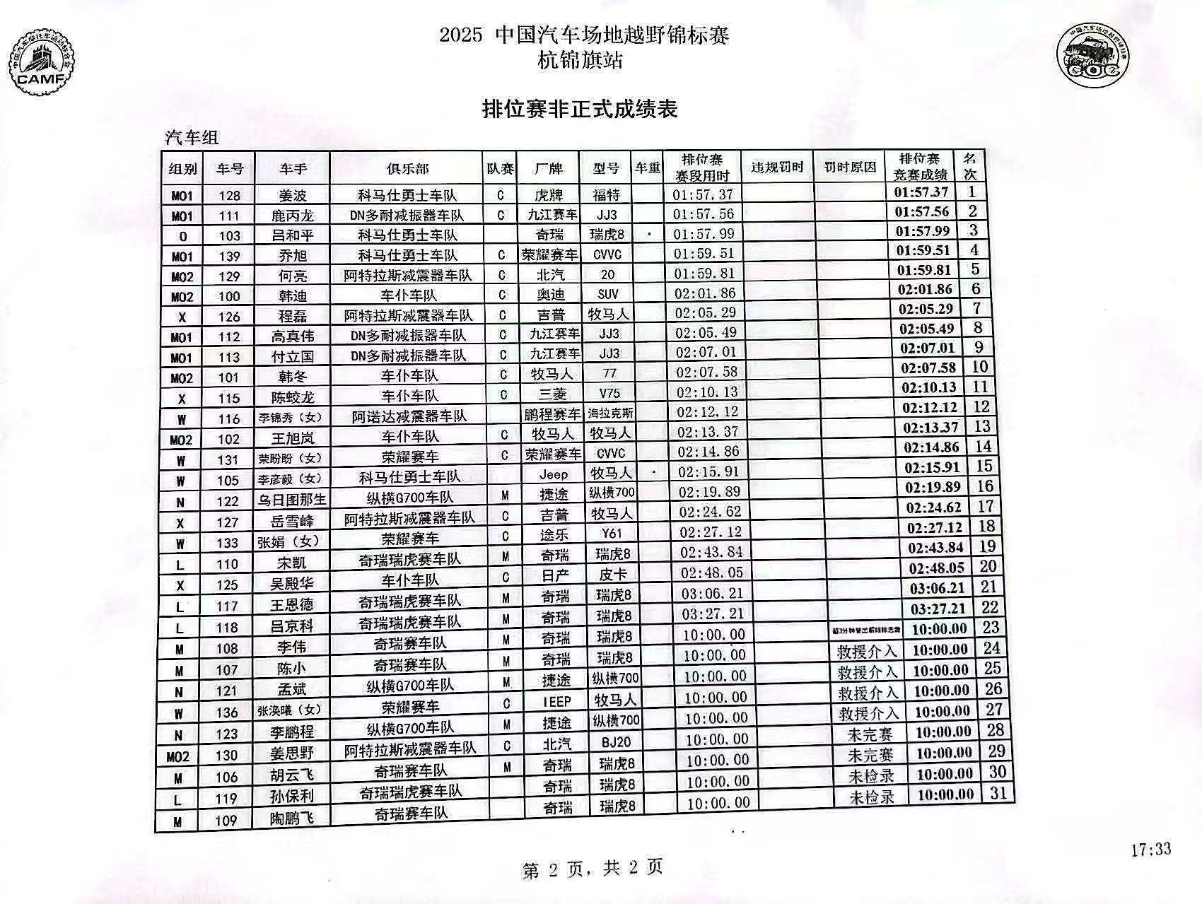 COC杭锦旗站的参赛阵容可谓星光熠熠:汽车组的参赛车队既有奇瑞的两大战线厂商力量,也有九江赛车JJ3场地版的深厚技术底蕴,加上阿特拉斯减震器车队、车仆车队、荣耀赛车、科马仕勇士(参数|询价)等实力俱乐部同台竞技;参赛车手云集胡云飞、陶鹏飞、鹿丙龙、孟斌、乌日图那生、李鹏程、乔旭等多位冠军车手。正是这些冠军车队与车手的同场对决,让杭锦旗站不仅成为自主与合资厂商的竞技舞台,更是冠军俱乐部之间的巅峰之战。