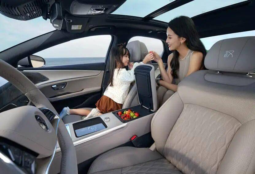 舒享配置上,汉长续航版坐拥三大亮点:智能冷暖冰箱拥有4.5升容积,支持-6℃至50℃宽温域调节;ANC主动降噪技术配合双层隔音玻璃以及全车近90处隔音材料,打造出图书馆级的静谧空间;特别开发的智能防晕车系统可全方位解决用户晕车困扰。从空间、配置到静谧性全面优化,汉长续航版让每一次出行都成为温馨体验。