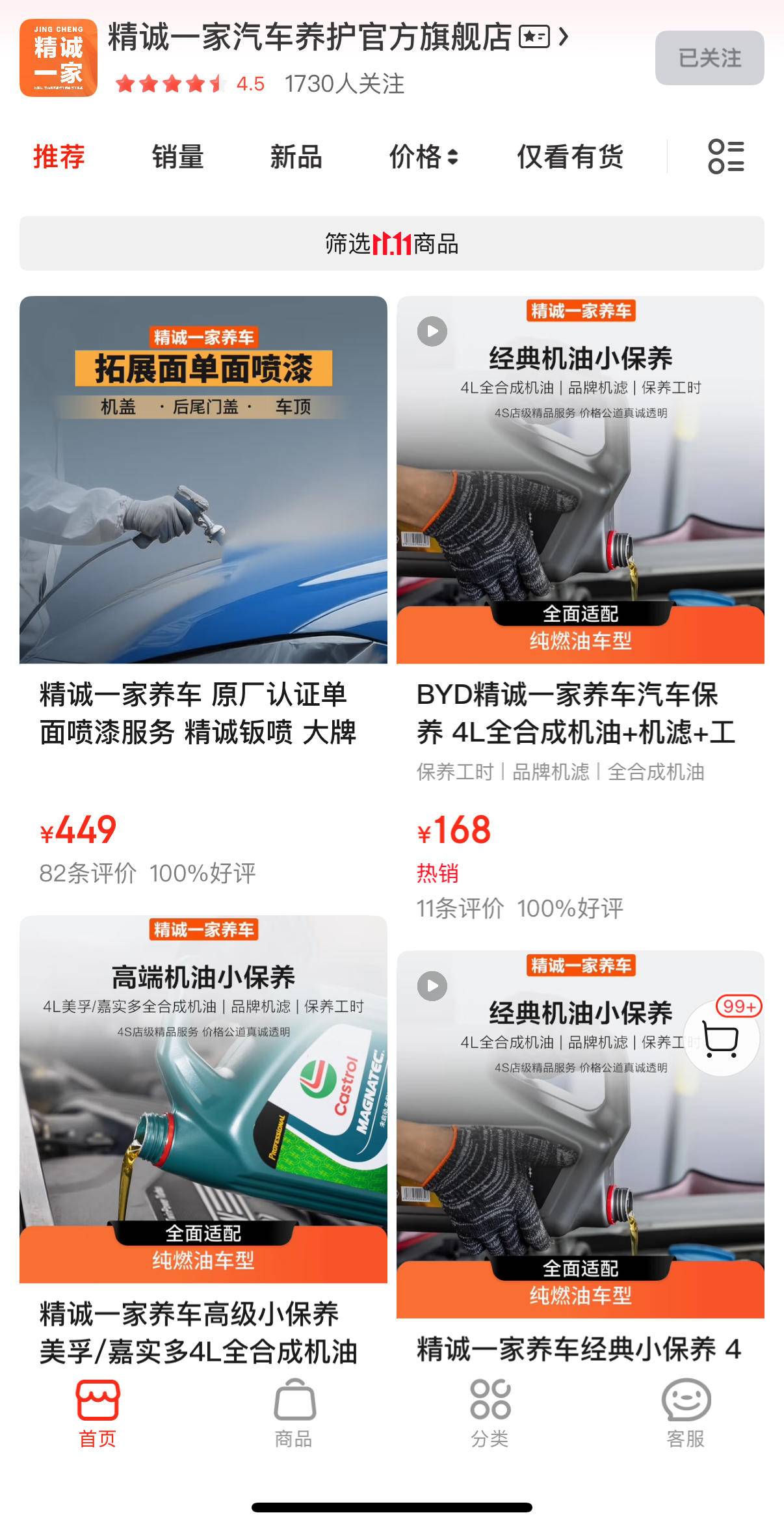“精诚一家养车”此前已入驻抖音与京东,近一个月内GMV突破百万。电商平台的布局,意味着比亚迪“精诚一家养车”正式为所有品牌车辆提供养车服务,利用主机厂资源优势与4S级服务品质,广交四方朋友,为更多车主打造越级体验。