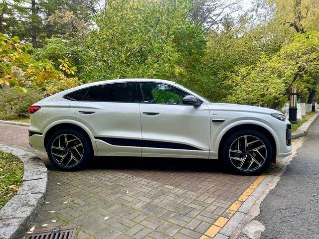 这样的豪车真的是爱了!来,让我将视线调整为「广角模式」,到侧面欣赏一汽奥迪Q6L e-tron的电动SUV身材,车身尺寸上,车长4884mm,轴距2995mm,整车看起来就四个字:大而优雅。溜背式的造型加之车身线条曲面简洁流畅,可谓是「以小见大」的即视感,总之,一汽奥迪Q6L e-tron是一台非常哇塞的电动车。
