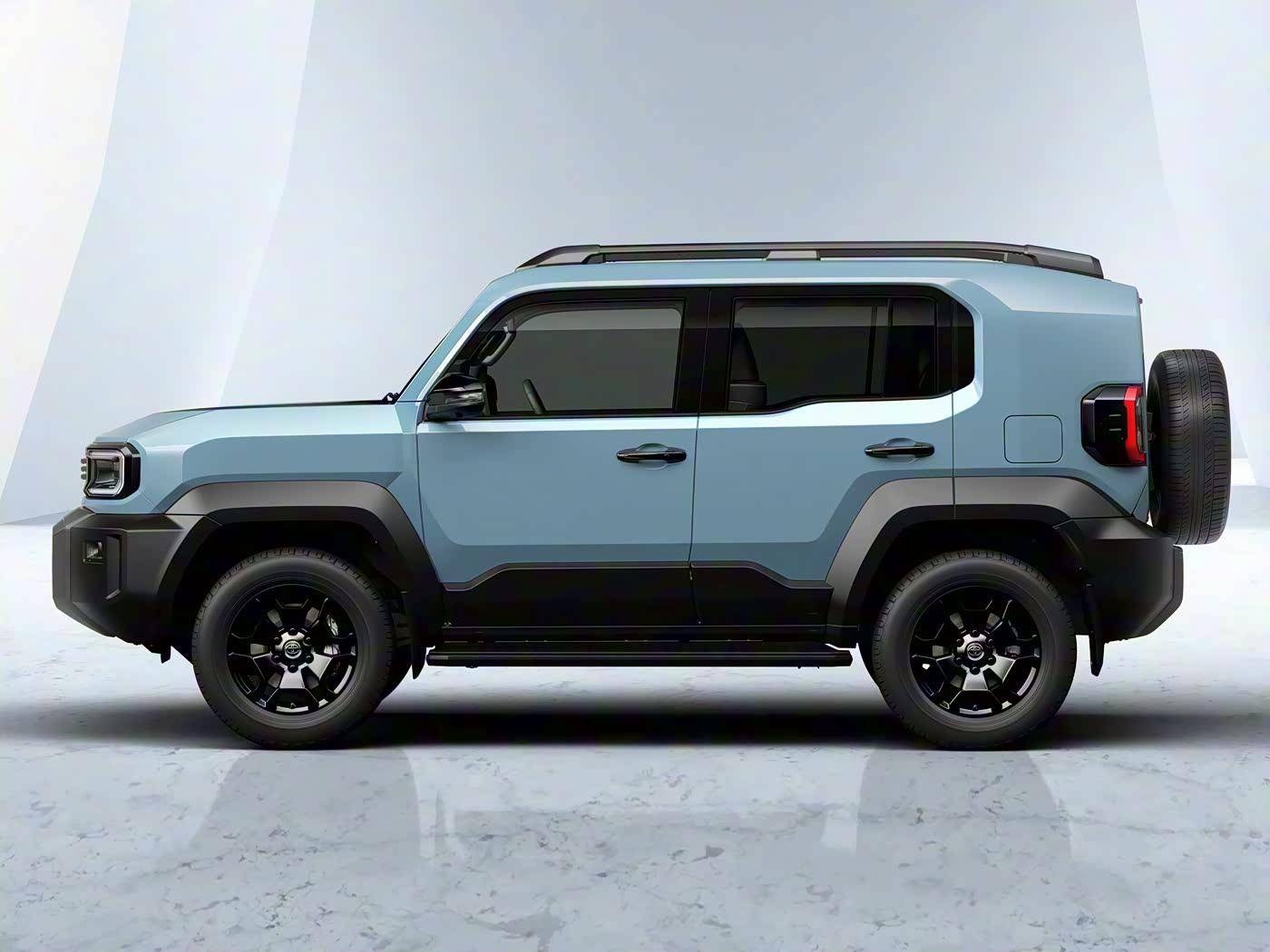车身侧面部分使用了方盒子式的造型轮廓,前翼子板使用了隆起的机甲风格造型,车门上部线条很平整,下部使用了大面积的黑色护板装饰。新车后部取消了后侧窗,使用了宽厚的车身同色涂装,有着很高的辨识度。其中圆灯车型还带有涉水喉以及车顶行李架平台,方灯车型则是普通的车顶行李架。