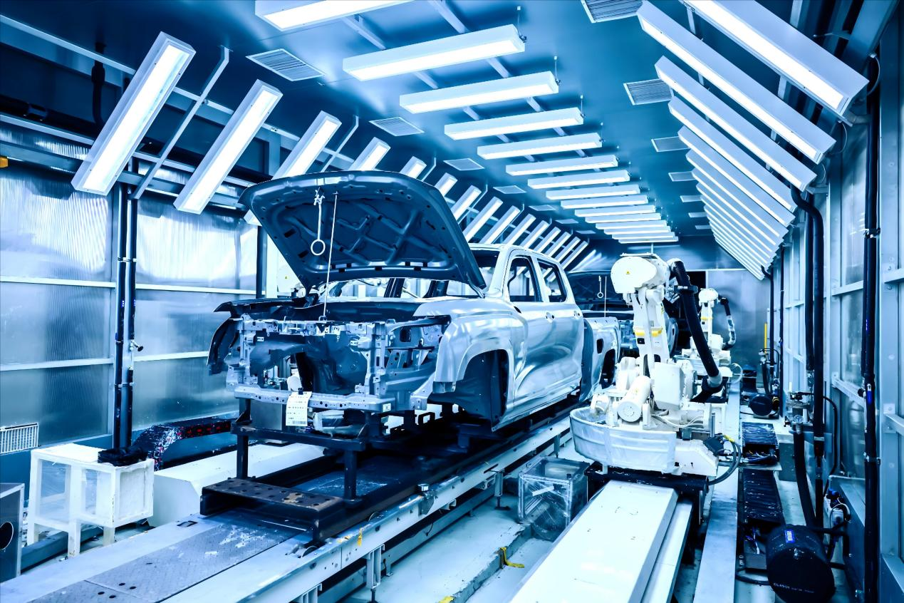 那一个个零部件又是如何变成一个车身的呢?焊装有两个核心考量点:焊接质量与焊装精度。金刚炮全车设计超5500个焊点,通过269台机器及关键点100%自动化焊接来保证焊接质量;通过采用全球领先的德国三坐标测量系统,对全车1400多个焊点进行检测,焊接参数群控系统等,确保焊接精度最小控制在70μm;车身螺柱焊智能在线检测系统,基于高精度机器视觉与深度学习算法,对焊装车身上的上百个关键螺柱焊点进行100%在线实时检测,实现缺陷的0流出。