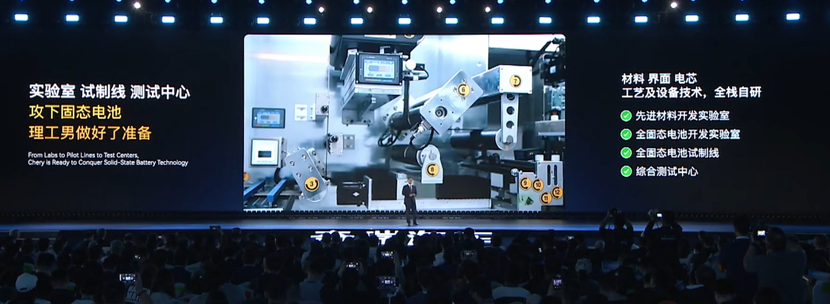 发动机是鲲鹏动力的现货,奇瑞也交代了电池全域技术方案,被命名为犀牛电池,并分享了全固态电池的研发进展——奇瑞给出的时间表是,2027年首批装车验证,完成实车搭载与性能测试,为量产落地奠定基础。