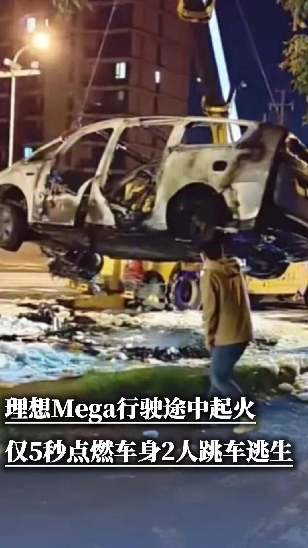 10 月 23 日 21:30 ,一辆理想 MEGA在行驶至上海闵行区合川路与漕宝路路口时,底盘传来爆炸异响并迅速冒烟,10 秒内火势吞噬车身,最终烧成空架。后车记录仪显示,驾乘人员仓促逃生,曾试图返回取物未果。