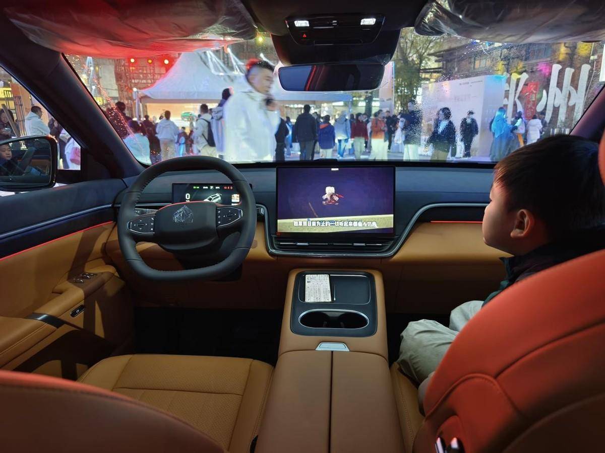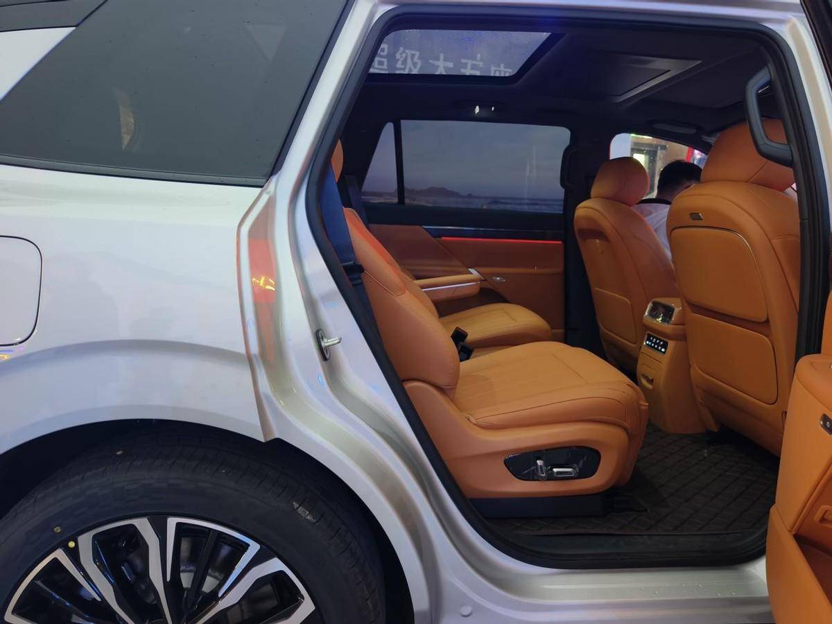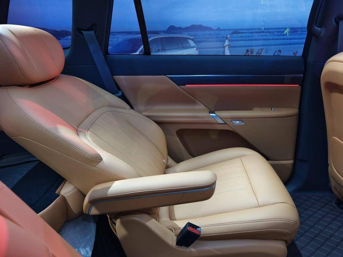 座舱内部的豪华配置也让体验感再次升级。首先是整体环境的打造,新车配备了双全景天幕及遮阳帘、双层夹胶隔音玻璃和WANOS全景声音乐座舱,“云感亲肌”超软材大面积包覆;其次是三大件,冷暖两用智能冰箱、21.4英寸后排娱乐屏和二排电动魔毯座椅;最后是超多的人性化细节,不会滑落的50W无线充电面板、二排智能扶手屏、前排柔光美妆镜等,值得一提的是电释放内门把手采用按键开启设计,轻触即开。