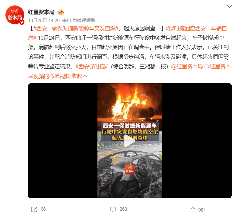 最后,本文涉及到的“西安保时捷起火事件”,目前起火原因还在调查之中,具体以相关部门的调查结果为准,希望大家理性看待。