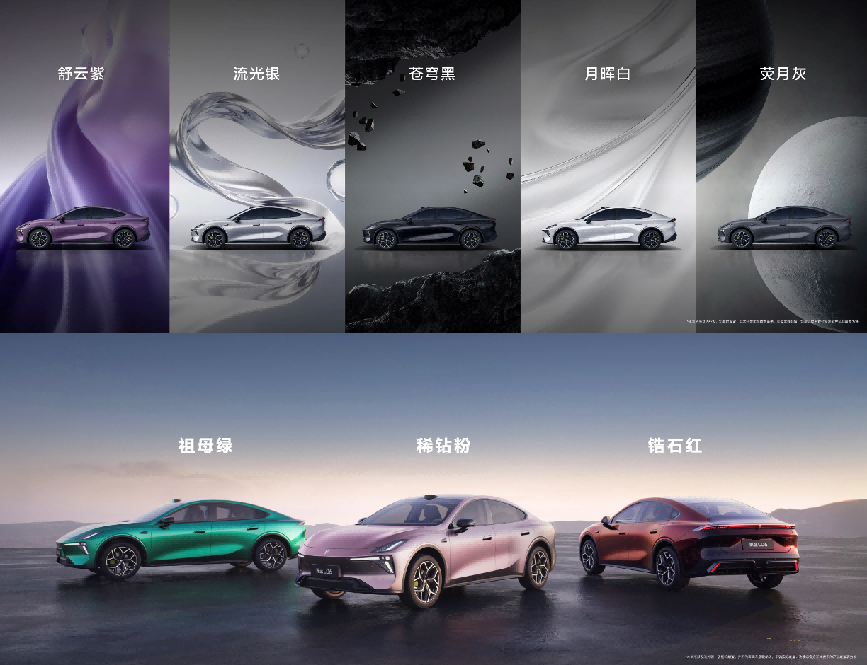 一经亮相,深蓝L06的出众颜值迅速成为热议焦点,其设计语言独树一帜,由全球设计大师亲自操刀,绽放花瓣灯等独特外观元素,极具辨识度与时尚感。5款车色和3款官方定制改色车衣,更从珍贵宝石中汲取灵感,呈现出独特的视觉魅力。
