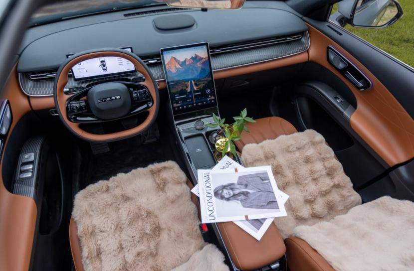 和外观一样,内饰设计也采用两种造型。其中“虎款”座舱造型命名为晨曦山林环抱式座舱,“豹款”座舱造型命名为星河丛林灵动式座舱,分别配备15.6英寸和13.2英寸中控屏,同时车辆采用HMI5.0交互设计、配备8155芯片,支持全品牌手机互联Hicar/Carplay/Carlink。再加上AI语音大模型、全新高德导航系统等等,满满的电感。