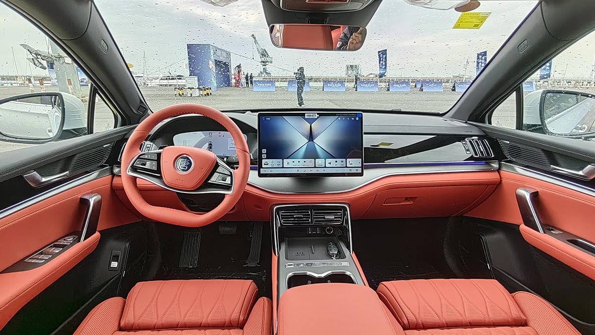 车内搭载了15.6英寸2.5K自适应旋转中控屏和12.3英寸全液晶仪表,内置6nm 5G芯片和智能座舱高阶版-DiLink 100,实现AI全场景智能语音交互。新车还把原先的电子档杆改为电子怀挡设计,中控台显得更加简洁。此外新车还新增了6.9L车载冷暖冰箱,支持-6~50℃温控,并具备具备延时断电功能。