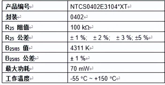 NTCS0402E3104*XT为行业标准尺寸,可直接替代竞品解决方案,适用于汽车LED模块、电控单元、传感器总成、电池组以及相机、雷达和激光雷达模块、能量表、办公设备、工业烟感火灾探测器。