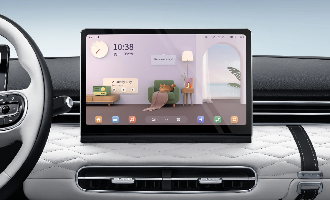 东风奕派纳米01则在传统智能座舱的基础上提出了“情感化智能伙伴”的概念。其智能座舱以一块12.8英寸的智能中控屏为核心,采用“精致云端客厅”设计理念,除了全场景AI语音交互,还带来了萌宠互动等灵动交互,打造更有温度的座舱体验,暖心治愈每一天。针对女性用户,除了智能寻车及个性化欢迎模式,新增了一些趣味功能以增添生活中的乐趣,比如音乐外放、对外喊话等等。
