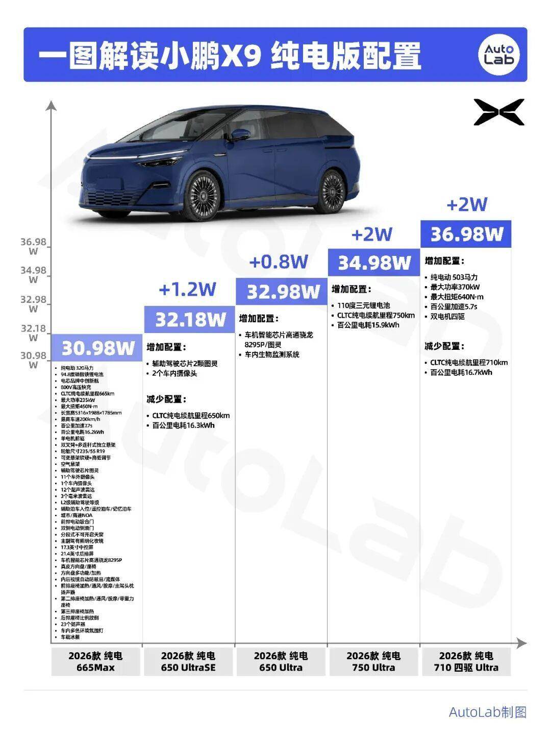 事实上,2026款小鹏X9纯电版能展开的确实不多,其首发搭载的第二代VLA在发布会前面已经用了1个多小时说透了,其他产品力和对应版本的价格也完全看齐X9增程版。
