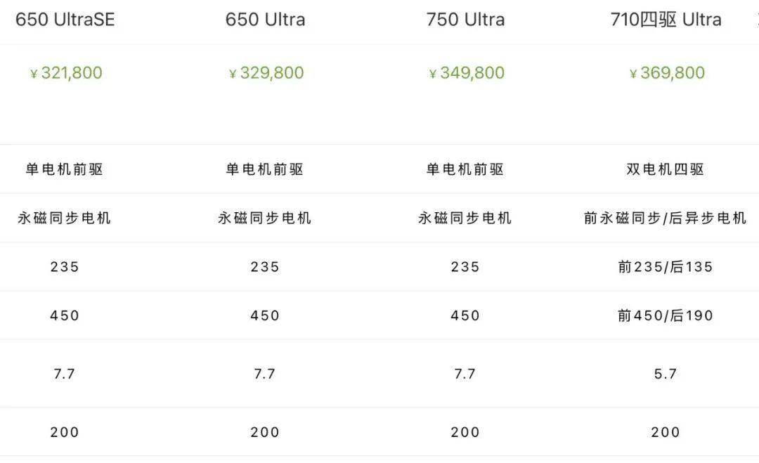 动力方面,不同于增程版都采用后驱形式,X9纯电版除了顶配的710四驱Ultra版,其余的都是前驱形式。