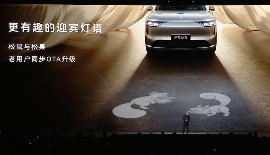 问界M8新增瑞红、湛蓝配色,全新21英寸曜影轮毂。升级896线激光雷达,全车38传感器,实现更强大的全向立体融合感知系统,此外还升级全新灯语“松鼠与松果”。