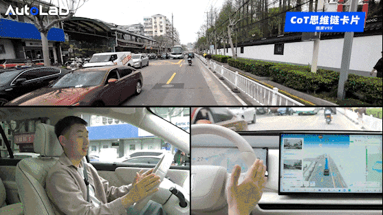 在复杂路段,它会通过卡片告诉你:“我在思考什么”、“我准备怎么做”。