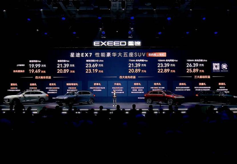 今日(4月19日),定位于“性能豪华大五座SUV”的星途EX7正式上市,新车共计推出6款车型,售价19.99-26.39万元,抢先置换价19.49-25.89万元。用奇瑞汽车执行副总裁李学用的话来说:“比20万级6系多一点,比30万级7系好一点”。
